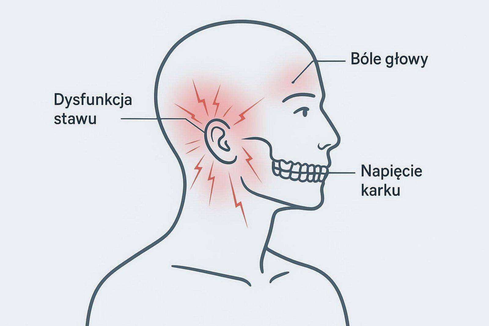 Skutki nie kończą się jednak na samej jamie ustnej. Nieprawidłowy rozkład sił podczas żucia bywa jedną z przyczyn przewlekłych bólów głowy, migren, a także bólu szyi, barków i pleców. U osób z zaawansowanymi wadami zgryzu mogą pojawiać się także problemy z oddychaniem (np. oddychanie przez usta) oraz obniżone poczucie własnej wartości, co wpływa na życie towarzyskie i zawodowe.
